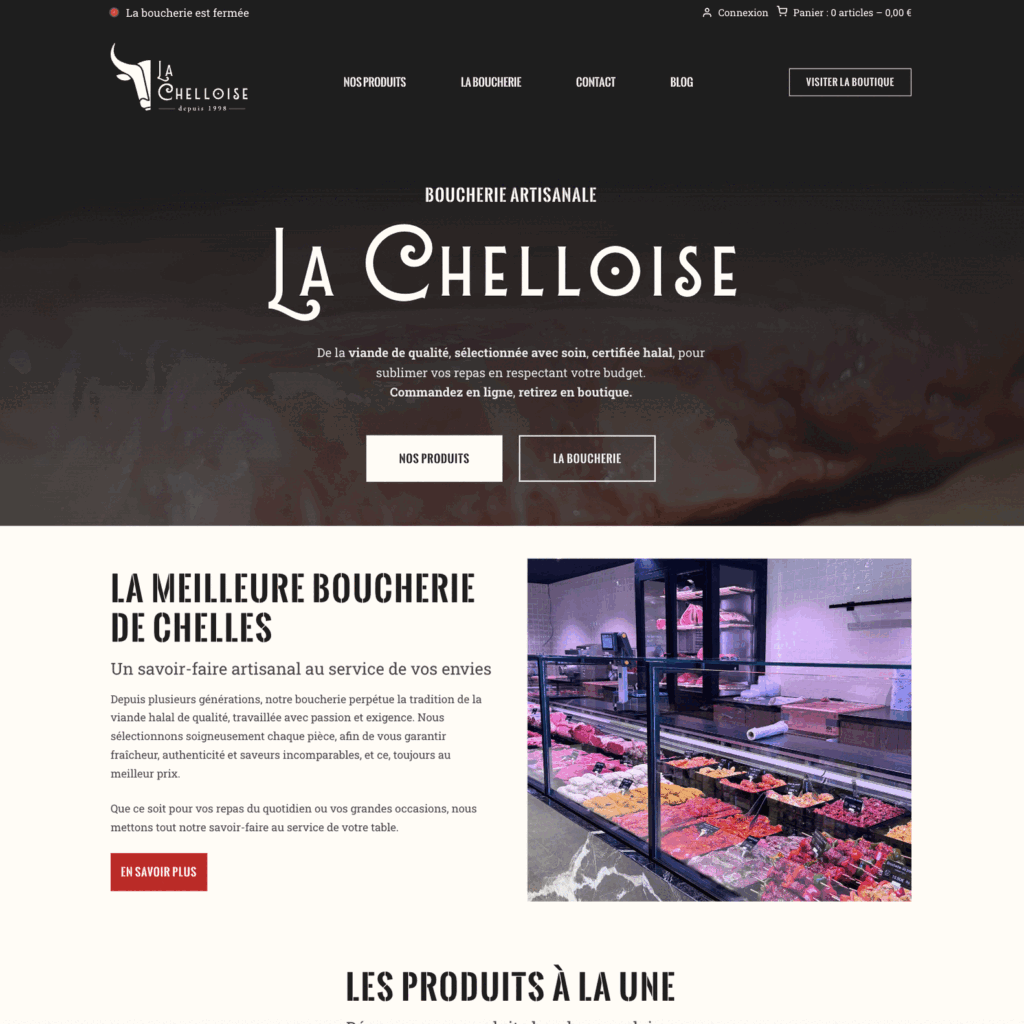 La Boucherie La Chelloise, institution locale depuis 1998, souhaitait moderniser sa présence sans perdre son identité artisanale.